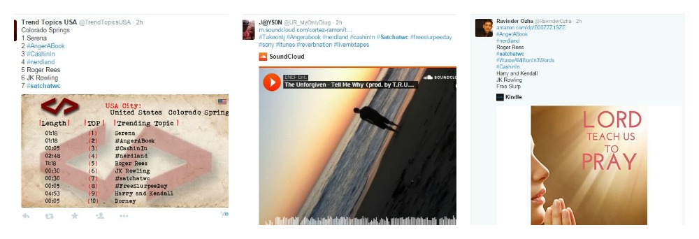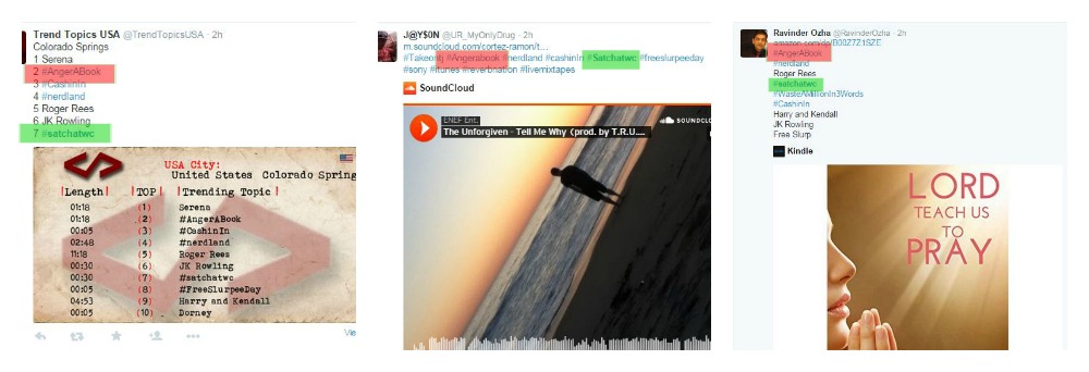 Here are some typical SPAM tweets you would see in a chat: