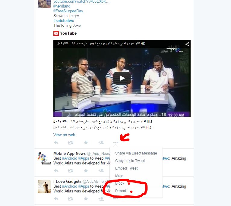 Block a SPAMMER by clicking on the three dots below the tweet