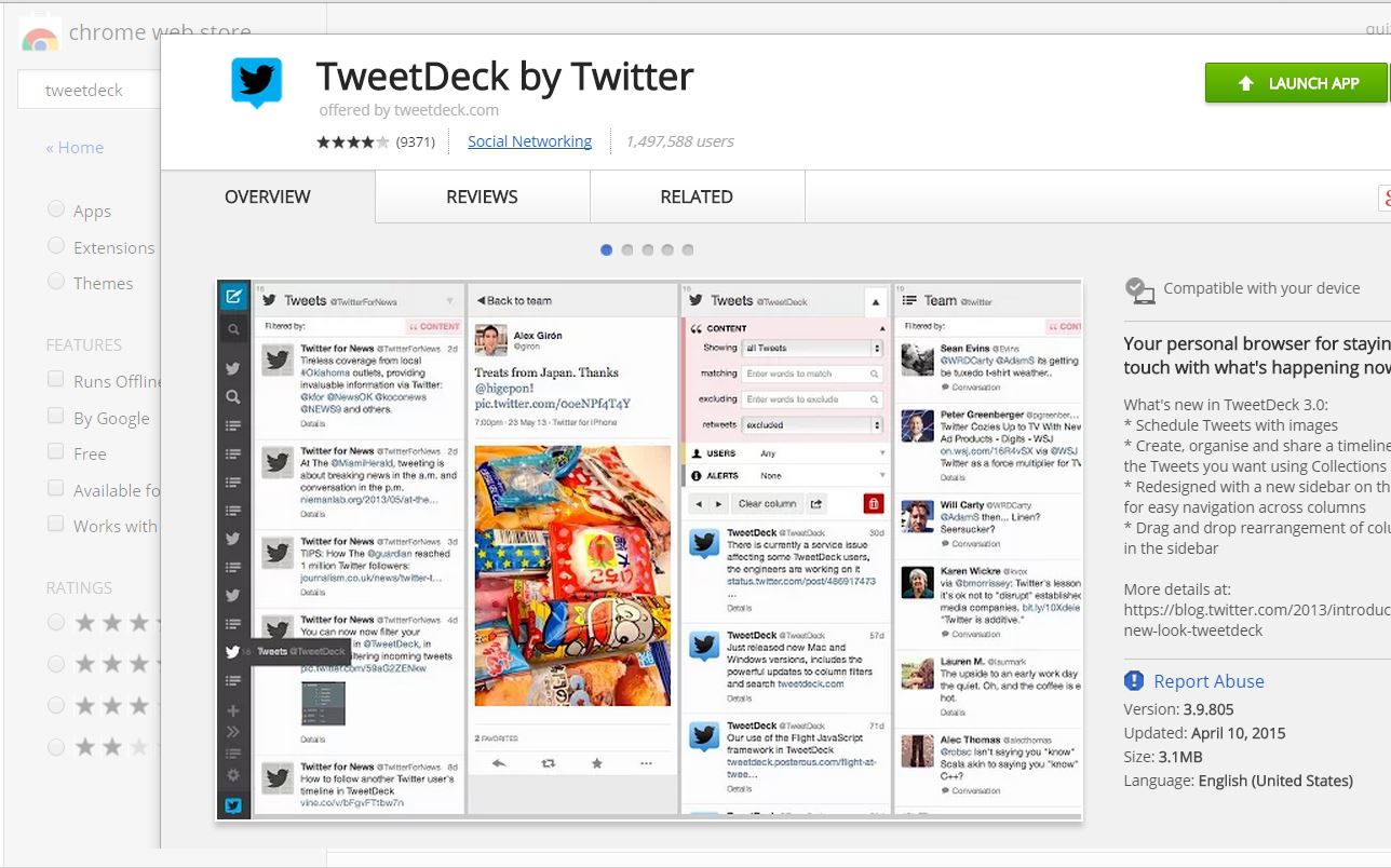 First download TweetDeck from the Chrome Store