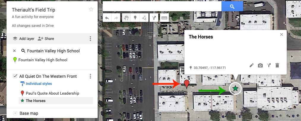 Here is another example of a Google Field Trip that I did on the campus at Fountain Valley High School. This example has multiple subject examples.